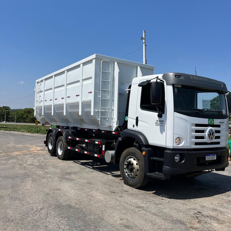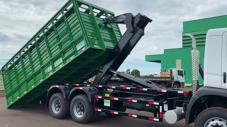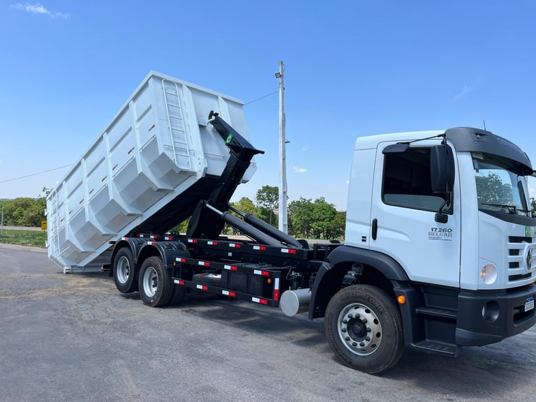 O caminhão roll on roll off é um veículo robusto e eficiente, equipado com sistema hidráulico para transportar grandes caçambas e materiais pesados. Ideal para serviços industriais, urbanos.